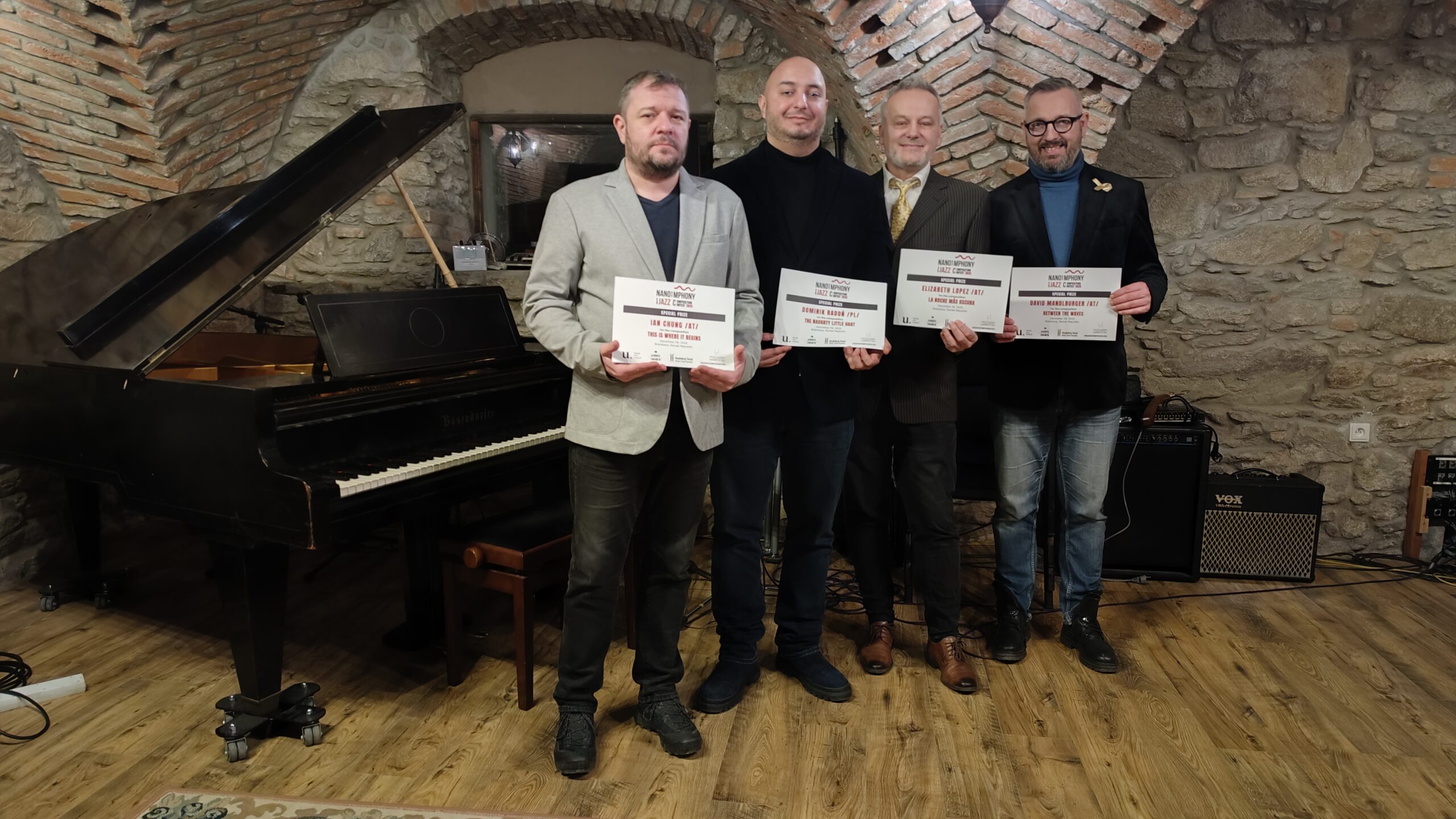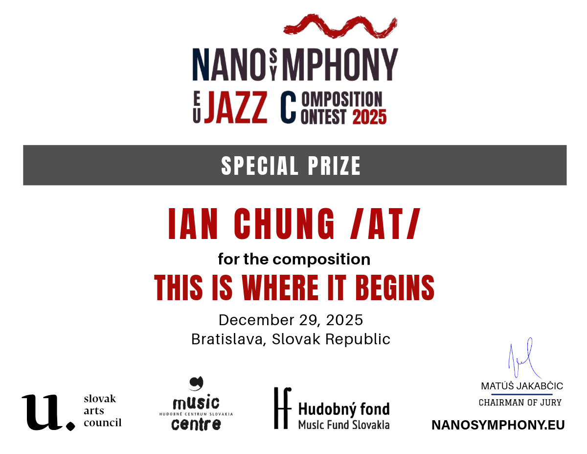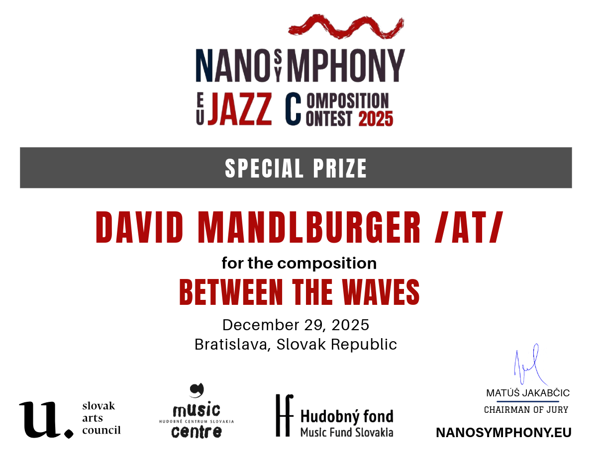 The contest was organized by Nanosymphony, o.z., in cooperation with its partners — Slovak Arts Council, Music Fund Slovakia, and The Music Centre Slovakia — whose support was instrumental in fostering young talent, supporting artistic excellence, and strengthening the international visibility of contemporary European jazz composition.
